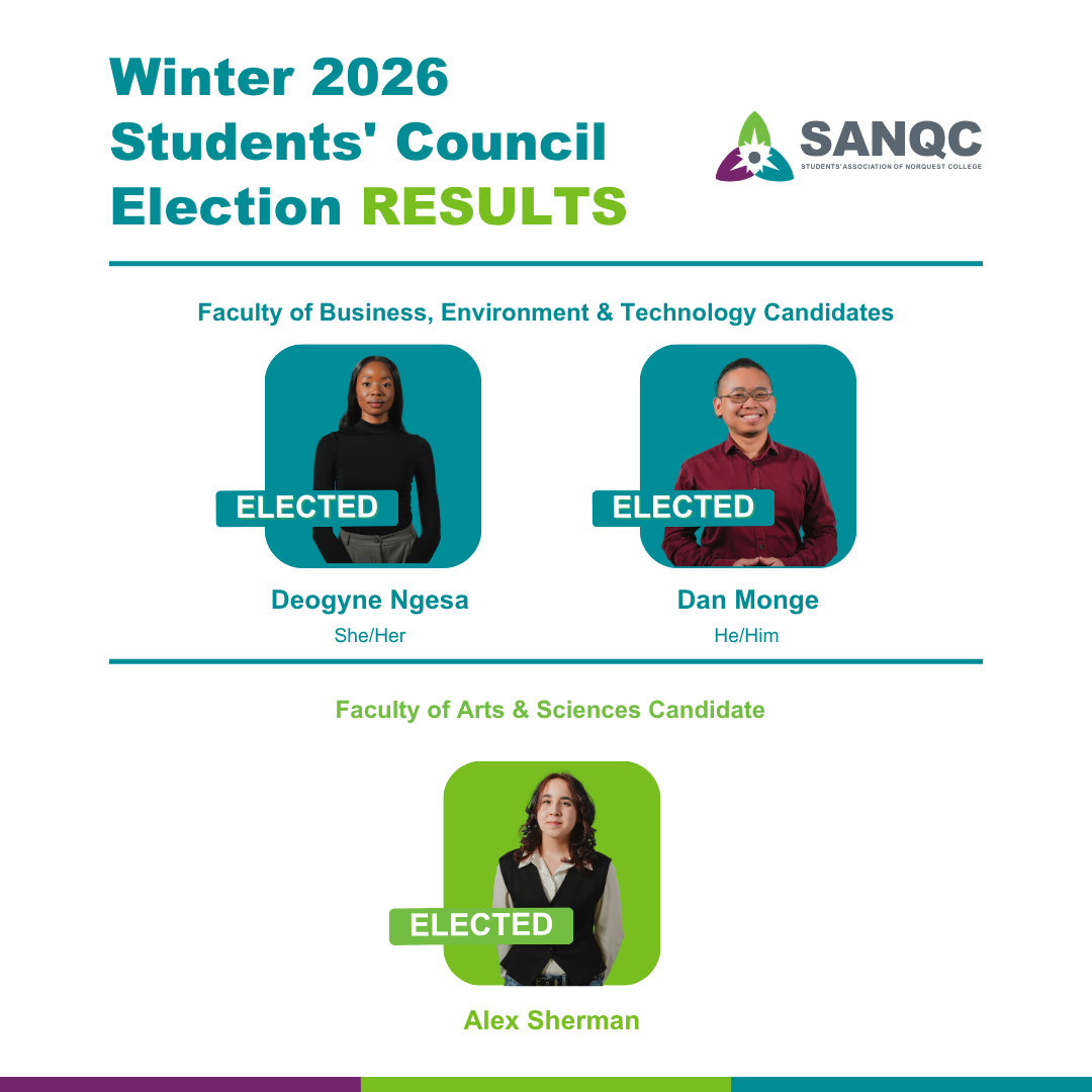 Congratulations to all those elected, we know you are excited to help be the voice of students at NorQuest.
