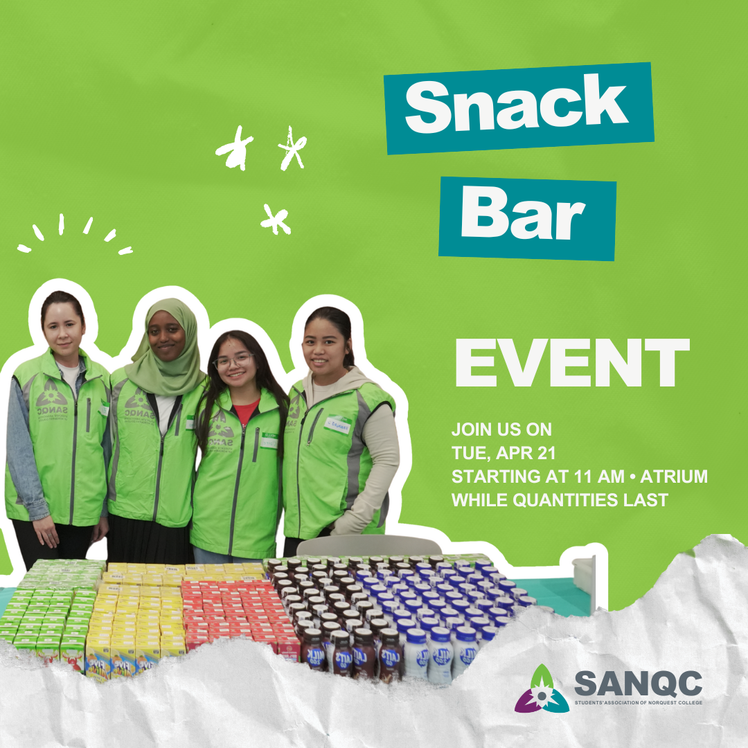 Craving a quick bite between classes? Stop by the SANQC Snack Bar for tasty treats, refreshing drinks, and good vibes! Whether you’re fueling up for study time or just taking a break, we’ve got you covered.