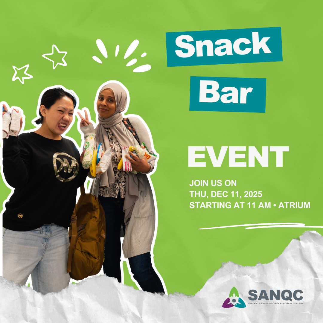 Grab a snack and connect with fellow students starting at 11 am on Thu, Dec 11 (while supplies last) — all brought to you by your Students’ Association!