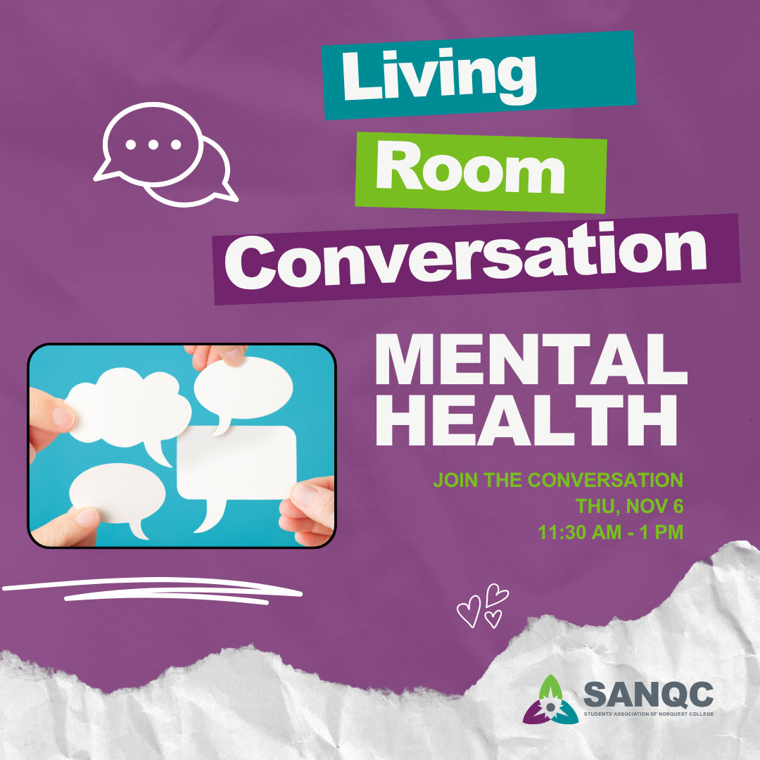 Join your Students’ Association for our Living Room Conversation on Thu, Nov 6, from 11:30 am – 1 pm. This is an open-communication opportunity to meet new people, connect, engage, and express yourself authentically.
