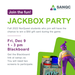 Join us on Blackboard for a fun morning playing Codenames! You’ll play as either a spymaster or an operative while your team tries to solve your clues before the other team solves theirs. No experience needed! It’s quick and simple to learn and we’ll be there to make sure you know how to play and will match you up with a team. One lucky Fall term NorQuest student will win a $50 gift card during the event! Join in the…