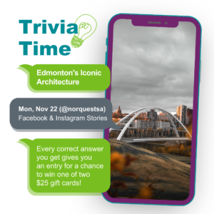 Can you name the iconic architectures around Edmonton? Let's tour our beautiful city together through our Trivia Time: Edmonton's Iconic Architecture! Watch our Facebook and Instagram stories on Mon, Nov 22 then answer our trivia questions about Edmonton's iconic architecture. Every question you answer correctly will get you an extra entry for a chance to win one of two $25 gift cards! Make sure to follow us on Facebook & Instagram @norquestsa for your chance to play!