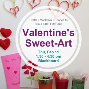Valentine's Day is approaching, are you ready? Whether it's to treat your special someone or to spoil yourself, we've got you covered! Join us on Thu, Feb 11 from 1:30 - 4:30 pm to learn how to make Mocktails the whole family could enjoy or to set a more romantic mood. And don't forget presents! We'll show you how to make an awesome Valentine's card as well as how to craft yarn hearts and heart garlands for a truly from…