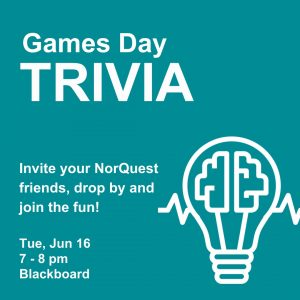 Challenge yourself and see how much trivia you know! Spread the word and bring your friends to see who can claim bragging rights by the end of this fun filled evening. All current Spring/Summer NorQuest students in attendance will be entered into a draw to win a $50 gift card. Join the fun on Blackboard here.