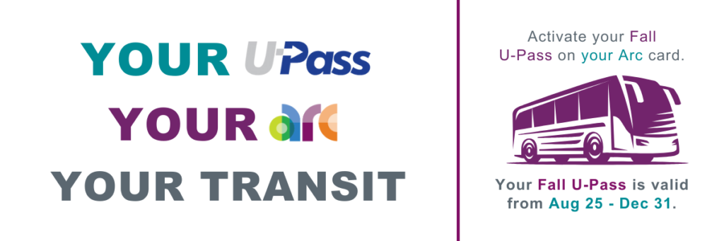 - Aug 25 – Dec 31: Fall term U-Pass in effect